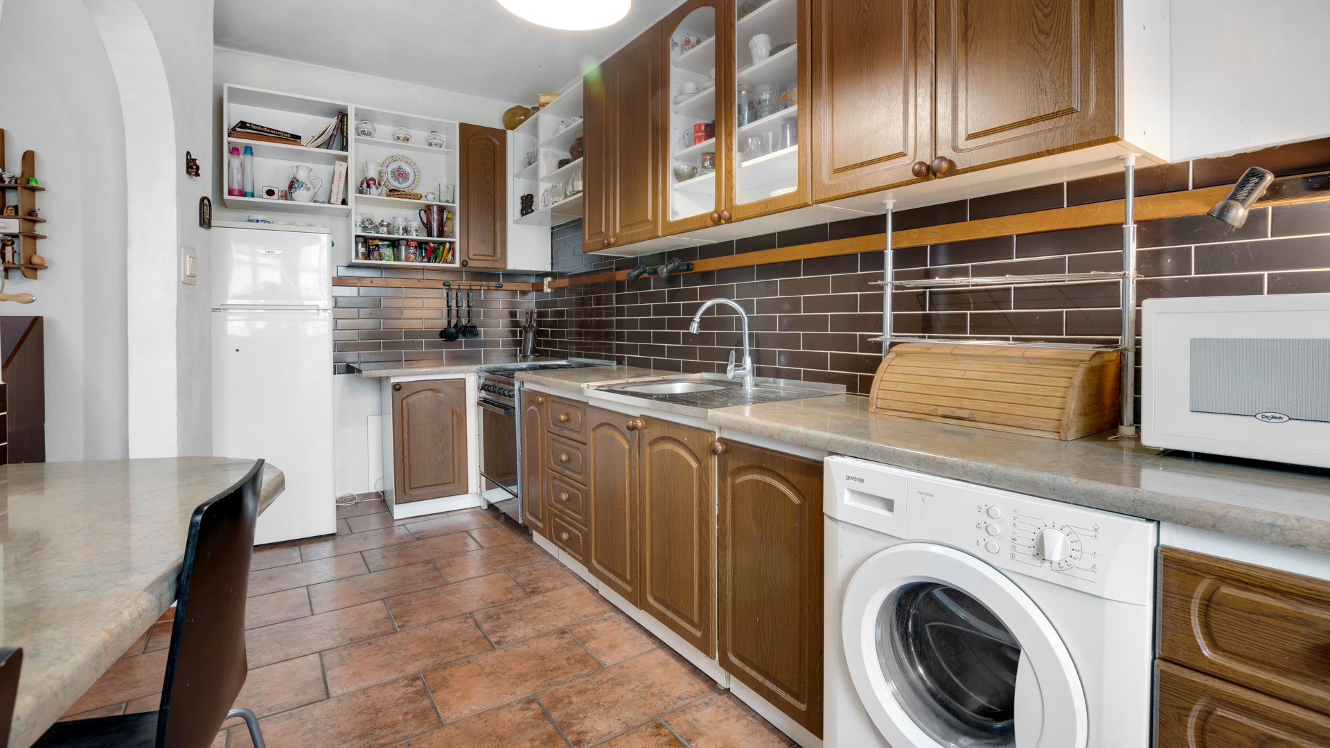 Byt je v slušnom pôvodnejšom stave, má vymenená plastové okná, v dvoch izbách je plávajúca podlaha a šatník rolldor.